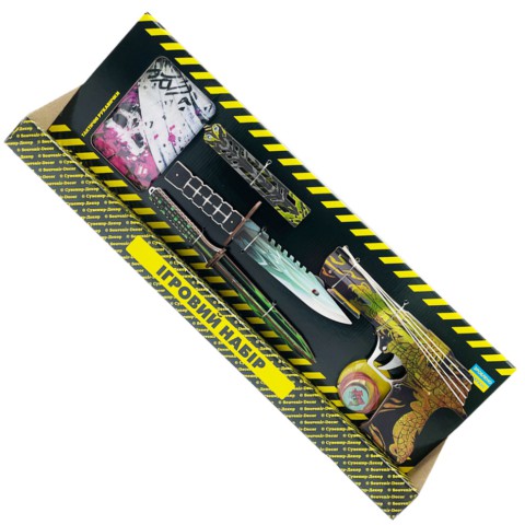 Дитячий ігровий набір "BIG BOX" - ідеальне рішення для любителів активних ігор та безпечних баталій! Особливо набір сподобається фанатам ігор CS:GO та Counter-Strike 2. У комплект входять: дерев'яний резинкостріл з гумками, тренувальні сувенірні ножі, тактичні рукавички та стильний брелок. *Забарвлення може відрізнятися від вказаного на фото.