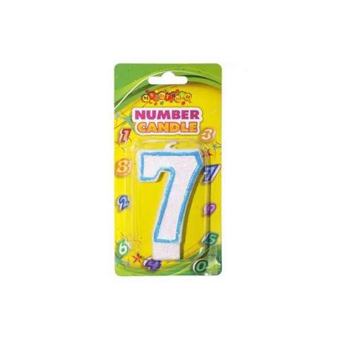 Свічка-цифра з кольоровим контуром і глітером всередині цифра 7 набір 4 шт HS122-7
