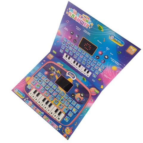 Залучити дитину до навчального процесу простіше простого з новим інтерактивним планшетом від "TK Group". Його ергономічний дизайн, багатий функціонал, зручне сенсорне управління, що "відгукується" на легке натискання пальчиком та безліч цікавих ігор стануть справжньою знахідкою для допитливого малюка.Особливості:- іграшка має компактні розміри, щоб зручно розташуватися в маленьких дитячих ручках;- яскравий дизайн із кольоровими зображеннями;- планшет обладнаний LED екраном, на якому відображаються літери українського алфавіту та позначки;- сенсорні кнопки;- у нижній частині планшета знаходяться 10 клавіш піаніно;- ліворуч і праворуч від екрана розташовані 8 кнопок:1 - увімкнення;2,3 - регулювання гучності;4 - зміна ігрових режимів;5 - дитячі пісні українською мовою;6 - розповідь казок;7 - потішні мелодії;8 - гра для перевірки знань "Іспит". Іграшка працює в 3-х режимах:1 - вивчення українського алфавіту;2 - вивчення слів;3 - прослуховування віршиків на кожну з букв алфавіту.Тип живлення - 3 батарейки "АА" (не входять до комплекту).* Характеристики та комплектація товару можуть змінюватися виробником без повідомлення