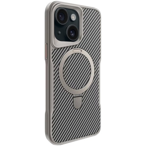TPU+PC чохол Metal Buttons with MagSafe Carbon Ring для Apple iPhone 15 (6.1") Сірий
