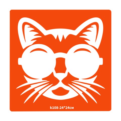 Трафарет для біо-тату Котик k108-24*24см, розмір 24х24см