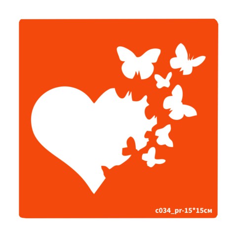 Трафарет для біо-тату Сердечко c034_pr-15*15см, розмір 15х15см