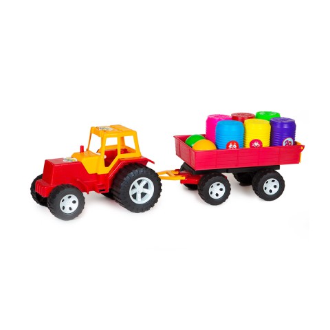 Трактор причіп з бочонками Бамсик, 007/5 із тематичним дизайном. Виготовлений із пластику, розміри 35x15x15 см, з причепом і бочонками. Сприяє розвитку уяви. Ідеально для дитячих ігор. Створюйте сільськогосподарські пригоди! Купуйте на Demsky.com.ua.