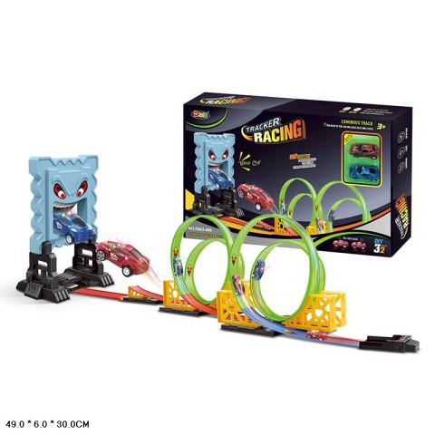 Трек + 2 машини, на батарейках, світиться у темряві, 49x30x6 см