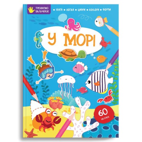 Тренуємо пальчики: У морі (російська) із морським дизайном. Виготовлений із паперу, 16 сторінок, російською, з завданнями. Сприяє розвитку моторики. Ідеально для дітей. Створюйте морські пригоди! Купуйте на Demsky.com.ua.