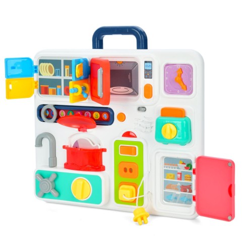Бізіпланшет - це професійно створена, багатогранно розвиваюча іграшка, яка допомагає виробляти і розвивати необхідні навички дрібної і великої моторики, а також логічні, ігрові та побутові навички у дітей. Оригінальний дизайн і колірна гамма доповнені достатком розвиваючих, нестандартних, дорослих елементів, які так привабливі і бажані для малюків, які пізнають цей світ.