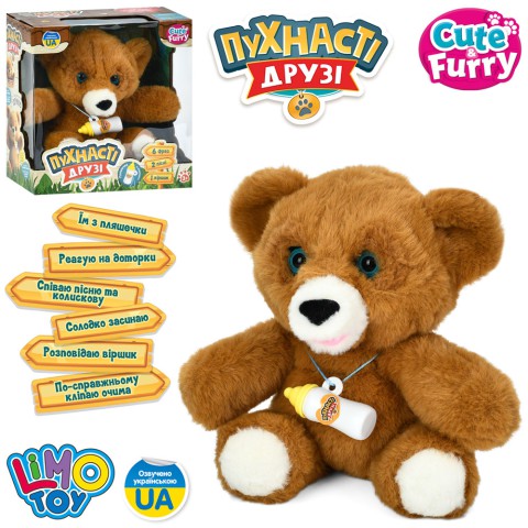 Тварина ведмедик 24 см музика українською пісні віршик сенсорний спить пляшечка M6215IUA