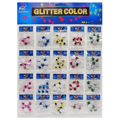 5 яскравих кольорів: Набір пропонує різноманіття відтінків (наприклад, синій, зелений, рожевий, фіолетовий, коричневий), що дозволяє підбирати оченята відповідно до кольорової гами вашого проєкту або створювати унікальні комбінації.
