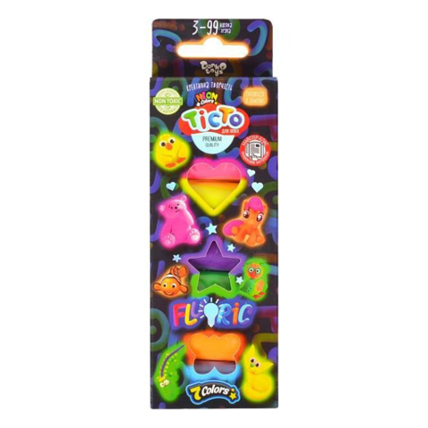 Тісто для ліплення Fluoric, TMD-FL-7-01U, 7 кольорів, Danko Toys із яскравим дизайном. Виготовлене з безпечного полімеру, 7 кольорів, флуоресцентне. Сприяє розвитку творчості. Ідеально для дитячих ігор. Створюйте барвисті фігурки! Купуйте на Demsky.com.ua.
