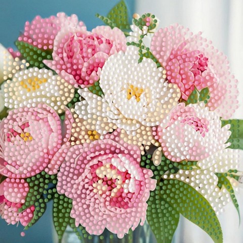 Алмазна мозаїка Strateg ПРЕМІУМ Півонії на паперовій основі розміром 18х18 см (ZAV1818-3)