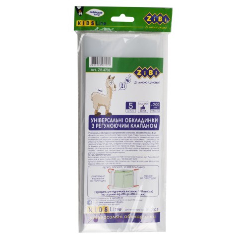 Універсальні обкладинки з регулюючим клапаном, 425 мм, Kids Line, 5 шт., 200 мкм ZB.4732