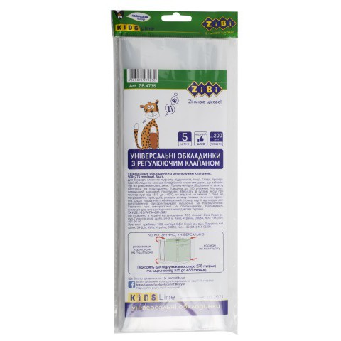 Універсальні обкладинки з регулюючим клапаном, 500 мм, Kids Line, 5 шт., 200 мкм ZB.4735