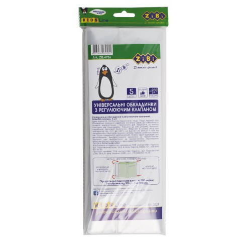 Універсальні обкладинки з регулюючим клапаном, 500 мм, Kids Line, 5 шт., 200 мкм ZB.4736