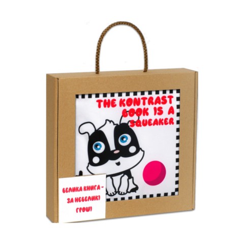 Контрастні чорно-білі зображення спеціально підібрані для розвитку зору немовлят із перших днів життя. Книжка виготовлена з м’яких, приємних на дотик матеріалів, безпечних для малюка. Вбудована пищалка привертає увагу та стимулює слух.