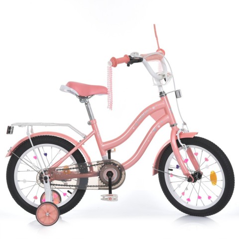 Дитячий велосипед на 18 дюймових колесах із дзвінком і багажником STAR PROF1 MB 18061Дитячий велосипед MB 18061 STAR, 18 дюймів - спеціально розроблений для дівчаток і має всі необхідні характеристики, щоб забезпечити комфорт і безпеку вашій дитині.Велосипед дитячий MB 18061 - має комфортне регульоване за висотою сидіння і кермо, що дає змогу налаштувати велосипед під зріст і зручність вашого малюка, забезпечуючи правильне положення тіла під час катання.Двоколісний велосипед MB 18061- виконаний з турботою про комфорт і безпеку дитини, щоб ваш малюк відчував себе впевнено і безпечно, в комплект входять допоміжні страхові коліщатка. Вони допоможуть вашому малюкові освоїти мистецтво велосипедного катання, не побоюючись впасти.Характеристики:Матеріал рами: стальКермо: 1-болтове кріпленняМ'яка накладка на керміУ комплекті: ліхтарик, дзвінок і дзеркалоСидіння: шкірозамінникВисота сидіння регулюєтьсяКаретка розбірна, на насипних підшипникахСистема шатунів: одноелементна зі знімною зіркоюЗахист ланцюга: повнийГальма: переднє - кліщове, заднє - педальнеГумові колеса - 18 дюймівДодаткові коліщатка страховкиПедалі: пластмаса з бічними відбивачамиКрила переднє і заднєКатафоти: спереду, ззаду, на колесахМеталевий багажникВелосипед зібраний на 75%