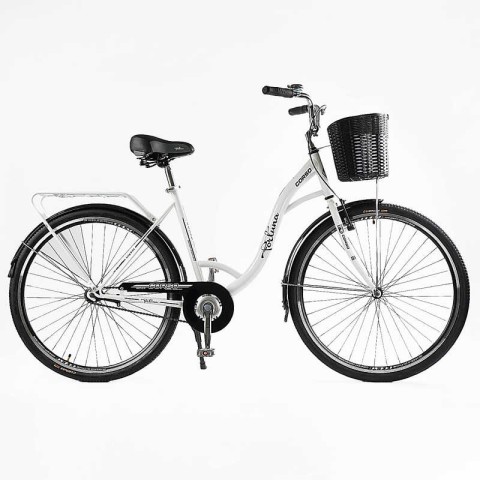 Велосипед міський Corso Fortuna 28" з кошиком, одношвидкісний зі сталевою рамою 20" – зручний для прогулянок, сталева рама для міцності, кошик для вантажів. Одношвидкісний для простоти, колеса для міста. Підходить для підлітків, розвиває фізичну форму.