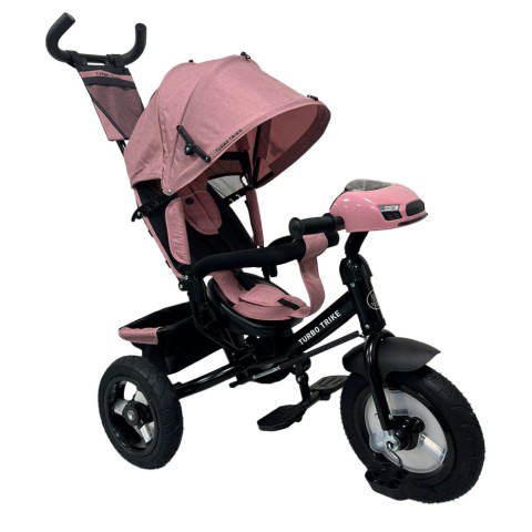 Бренд TURBO TRIKEКатегорія дитячі триколісні велосипедиСтати універсальнимРекомендований вік від 1,5 до 3 роківТип колясочнийРекомендоване навантаження до 25 кгМатеріал рами стальКермо з м'якою накладкоюІгрова панель світло/музика USB/МР3/BT живлення: 3 батареї типу AAЗахист 3-х точкових ременів безпеки з м'якими накладками зі світловідбивними смугами. бампер розсувний з м'якою накладкою Ремінь-захист від сповзанняСидіння м'який чохол з доп.накладкою на сидіння та подушка під голову;Гральна панель ширина: 29 см, шлібіна: 19 см регульована відстань до керма; висота від сидіння до підлоги: 43 см висота від сидіння до нижньої підніжки: 24 смспинка висока спинка 35 см; 3 положенняКапюшон 2 положення регулюється за допомогою фіксаторів; незнімний; оглядове вікно;Тканина нова, UV 50+/WPF захист від вигорянняБатьківська ручка подвійна посилена 2 положення, висота від підлоги: min 94 см/max 100 см, м'які фомові накладки швидкознімнаПідніжка складається з антиковзною поверхнеюКолеса надувні (гумові) 12/10; на підшипниках (передні та задні колеса) Ø передніх коліс: 32 см Ø задніх коліс: 27 см ширина шасі задніх коліс: 53 см обода: алюм+пластик; пластиковий захист (переднє колесо); фіксатор вільного ходу педалей;Гальма: ножні, 2 шт.Багажний кошик тканинний, з жорстким дном, знімнийДодатково сумочка для дрібниць, пульт.