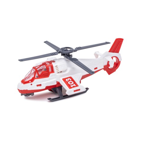Найпершими на місце події завжди прибувають працівники цієї служби!А як найшвидше дістатись туди? Звичайно ж на гелікоптері!Яскравий деталізований вертоліт з символікою служби має 2 гвинти, що обертаються, та кабіну, до якої можна посадити іграшкову фігурку