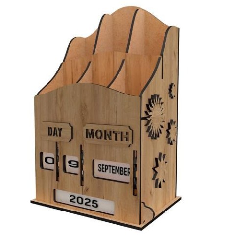 Це не просто органайзер для ручок і канцтоварів. Стильний, з вінтажною ноткою вічний календар від Fabrika Decoru, який стане справжньою окрасою вашого столу. Він послужить і функціональним аксесуаром, і оригінальним подарунком для близьких. Забудьте про набридлі кубики! Унікальний механізм на коліщатках дозволяє встановлювати дату — день, місяць і рік — простим обертанням. Керувати часом ще ніколи не було так просто!