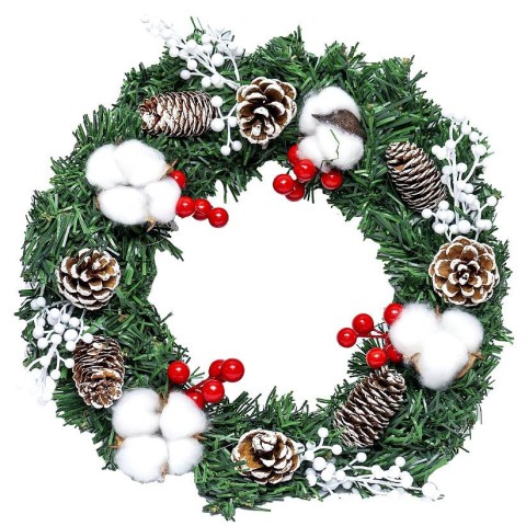Вінок новорічний з шишками та бавовною 84164 (116230) діаметр 35 см