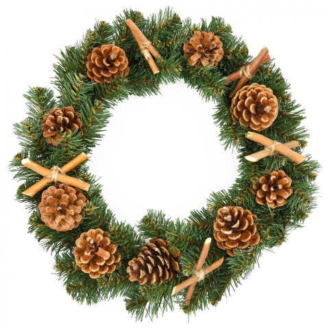 Виготовлений з високоякісних штучних матеріалів, вінок є довговічним, не вимагає догляду та ідеально підходить для прикраси вхідних дверей, стін або каміна. Він є символом Різдва та гостинності, вітаючи гостей та наповнюючи дім чарівністю.