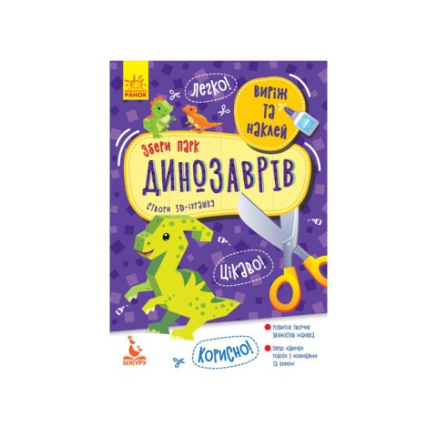 Альбоми цієї серії дозволять малюкам створити власні 3D-іграшки, набути навичок вирізання та склеювання, розвинути дрібну моторику, увагу, просторове і логічне мислення, уяву, творчу фантазію, провести час весело і з користю.8 фігур динозаврів.