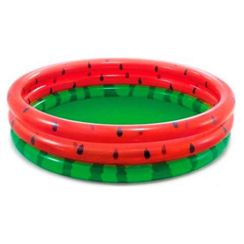 функціональний дитячий басейн Intex 58448 Кавун, оснащений всім необхідним для безпечного і комфортного використання, відмінно підходить для малюків старше трьох років. Якщо Ваш непосида обожнює проводити час з друзями і плескатися у воді, то для його активних рольових ігор така покупка, як дитячий басейн стане вдалим рішенням. Комфортна, простора модель вагою 2 кг має оптимальні габаритами 38 х 168 х 38 з об'ємом 581 л при заповненні 80%. Товщина вінілу на кільцях 0.23 мм і в зоні дна 0.18 мм з надійно приклеєними стратегічними зонами гарантує практичність і довговічність експлуатації не на один купальний сезон вперед. Надувна іграшка-басейн приємно порадує малюків незвичайним зовнішнім виглядом з яскравими принтами, що нагадують ароматний арбузик. Трикамерна конструкція наповнюється повітрям за лічені хвилини за допомогою ручного, ножного або електричного насоса, який можна придбати додатково.