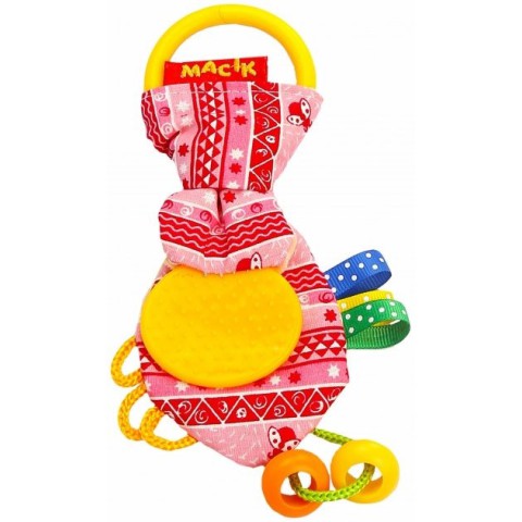 Забавка - це сама незамінна іграшка для маленького дослідника світу. Малюк не захоче з нею розлучатися ні на секундочку.А весь секрет Забавки полягає в тому, що у неї є маса потішних вузликів і петельок, шарудіння і пищалка, а також «смачний» прорізувач.Завдяки натуральним тканинам найвищої якості вона дуже м'яка і ніжна, як мамині руки. Іграшка прекрасно переносить щадне прання і швидко сохне. Також забавка має роз'ємне кільце для зручного кріплення на ліжечко, коляску або автокрісло.Склад: бавовняна тканина; різнофактурні матеріали; швейна фурнітура; звукові елементи; холлофайбер.Розмір: 9 × 16 × 1 см.Розмір в упаковці: 16 × 23 × 2 см.