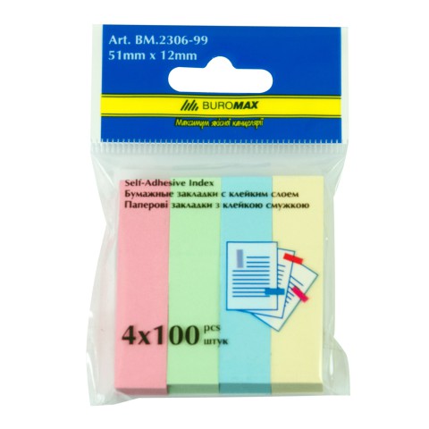 Закладки паперові, 51x12 мм, 4x100 аркушів (В асортименті)