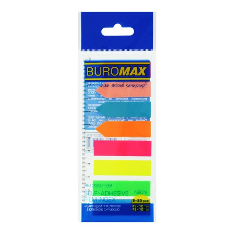 Закладки пластикові з клейким шаром Neon, 45x12 мм + 42x12 мм, 8x25 аркушів, 2 шт. в упаковці (В асортименті)