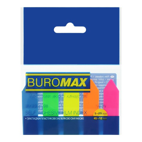 Закладки пластикові з клейким шаром Стрілки Neon, 45x12 мм, 5x25 аркушів, 4 шт. в упаковці (В асортименті)
