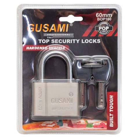 Для максимального захисту та надійності обирайте масивний навісний замок GUSAMI діаметром 60 мм. Цей замок є ідеальним рішенням для об'єктів, що потребують підвищеної безпеки, таких як склади, великі ворота або важкі двері. Корпус виготовлений із високоміцного металу, стійкого до корозії, екстремальних температур та спроб злому. Товста дужка замка забезпечує винятковий опір різанню та виламуванню. Навісний замок GUSAMI 60 мм має надійний внутрішній механізм, який гарантує тривалий термін безвідмовної експлуатації. Замок постачається з комплектом ключів. Обирайте цей міцний та довговічний замок, щоб бути впевненими у безпеці вашого цінного майна та забезпечити собі спокій.
