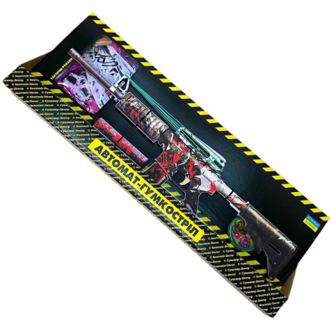 Подарунковий бокс для фанатів гри «StandOff 2».У комплекті сам Резинкостріл у вигляді автомата M4-А1 PALADIN, ігрові рукавички, брелок SO2, який чіпляється до пістолета та 3 шт. наклейки, які можна клеїти на автомат, як у грі.Чудовий подарунок для хлопчиків.Модель із фанери (готовий зібраний варіант) – модель зброї, що стріляє гумками для грошей. Гумки в комплекті.Модель автомату M4-А1 PALADIN, що діє, 4-х зарядний механізм. Максимум позитиву... Патрони продаються у найближчих Канцтоварах.Аксесуари можуть трохи відрізнятись від представлених на фото.