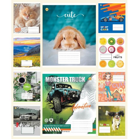 Зошити учнівські 12 аркушів лінія Тверда ТЕ22105 12ЛВ1 МІКС, 25 шт. в упаковці