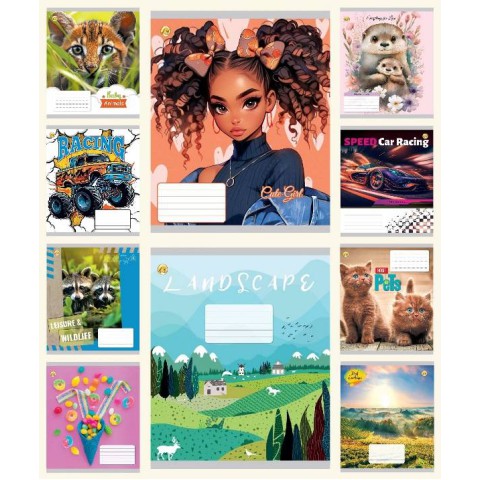 Зошити учнівські 12 аркушів лінія Тверда ТЕ42103 12ЛВ3 МІКС, 25 шт. в упаковці