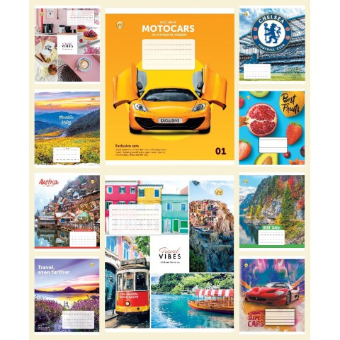 Зошити учнівські 18 аркушів клітинка Люкс ТЕ11226 Мікс 2, 20 шт. в упаковці