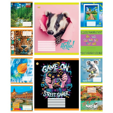 Зошити учнівські 18 аркушів клітинка Тверда Мікс 3, 20 шт. в упаковці – Шкільний аксесуар (18 аркушів, Тверда) у клітинку з твердою обкладинкою в різноманітних дизайнах. Щільність паперу 55 г/м², кріплення на скобу, кольоровий друк CMYK, ВД-лак. Упаковка містить 20 штук. Зручний для нотаток і креслень. Додає стилю. Замовляйте на Demsky.com.ua для стильного навчання!