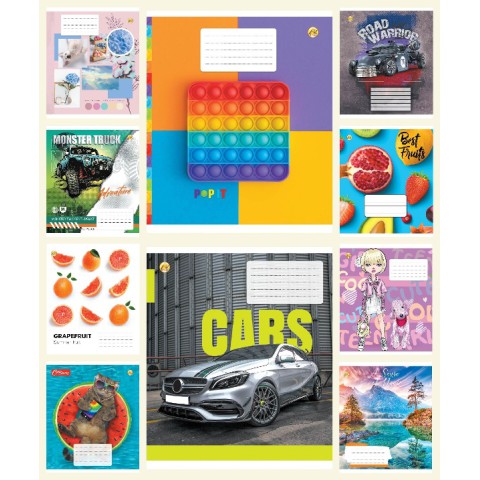 Зошити учнівські 18 аркушів клітинка Тверда ТЕ21215 18КВ3 МІКС, 20 шт. в упаковці