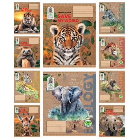 Зошити учнівські 24 аркуша клітинка Тверда Save planet, 20 шт. в упаковці