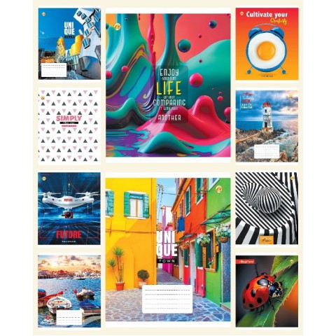 Зошити учнівські 60 аркушів клітинка Тверда 31604 Мікс 7, 10 шт. в упаковці