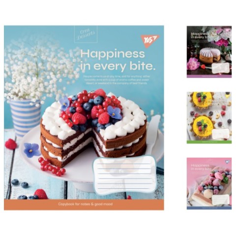 Зошити учнівські 18 аркушів лінія. YES Desserts, 25 шт. в упаковці