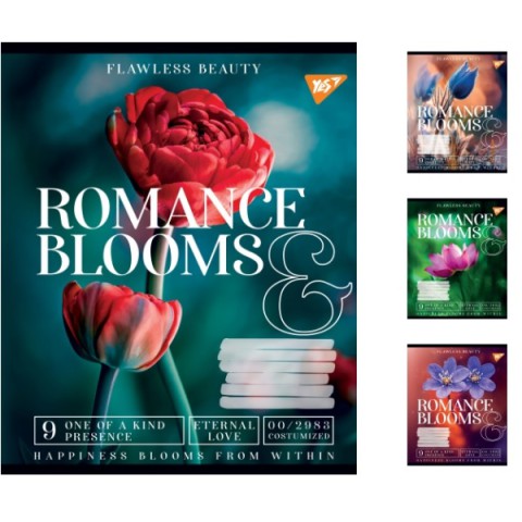 Зошити учнівські 60 аркушів клітинка. YES Romance blooms 10 шт. в упаковці