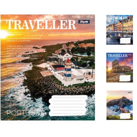 Зошити учнівські 96 аркушів лінія. 1В Traveller 5 шт. в упаковці
