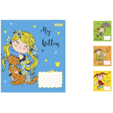 Зошити учнівські 12 аркушів клітинка. 1В Happy girl, 25 шт. в упаковці