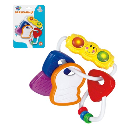 Брязкальце-прорізувач. Ключики відмінно підходять для маленьких ручок. Опуклі орнаменти на ключах дають різні тактильні відчуття, і допомагають малюкові впоратися з періодом появи перших зубів.При натисканні на усміхнену мордочку блимають вогники. Різнобарвні колечка зручно обертати, розвиваючи дрібну моторику рук.Особливості:масажує яснасвітлові ефектирозвиває сприйняття кольорурозвиває тактильні відчуттяЕлементи живлення: 3 батарейки типу AG13 1.5V (входять в комплект)